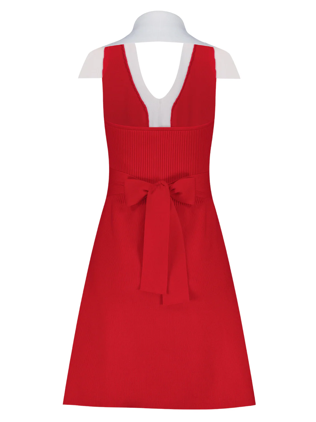 A dreamy, delicate knit mini dress in bright red. Features elegant white polo style collar and waist snatching ties in the back.Ā