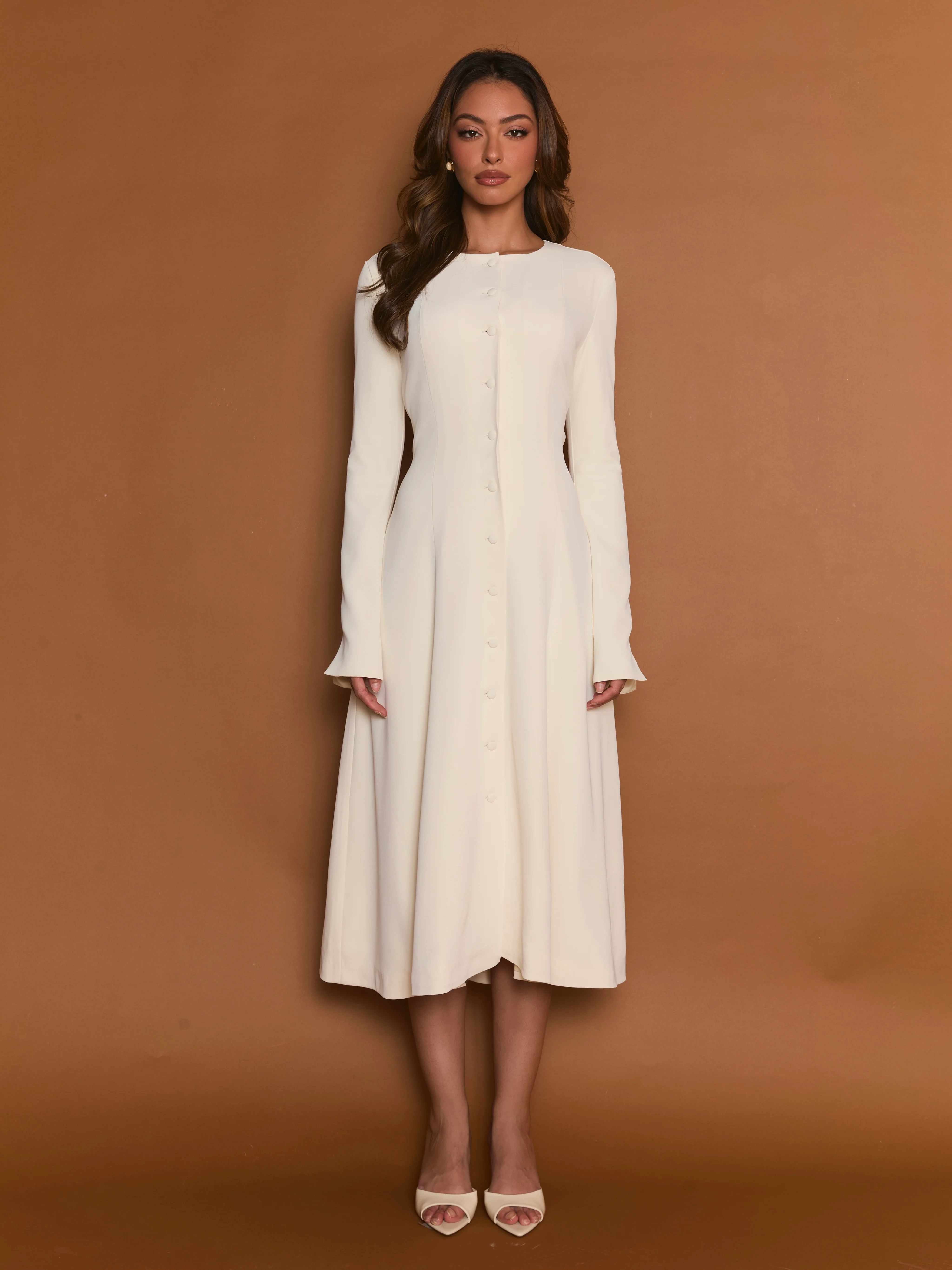 A timeless classic, now with long sleeves for an elegant touch. Made from breathable, high-quality fabric, this dress will keep you chic and comfortable all day.