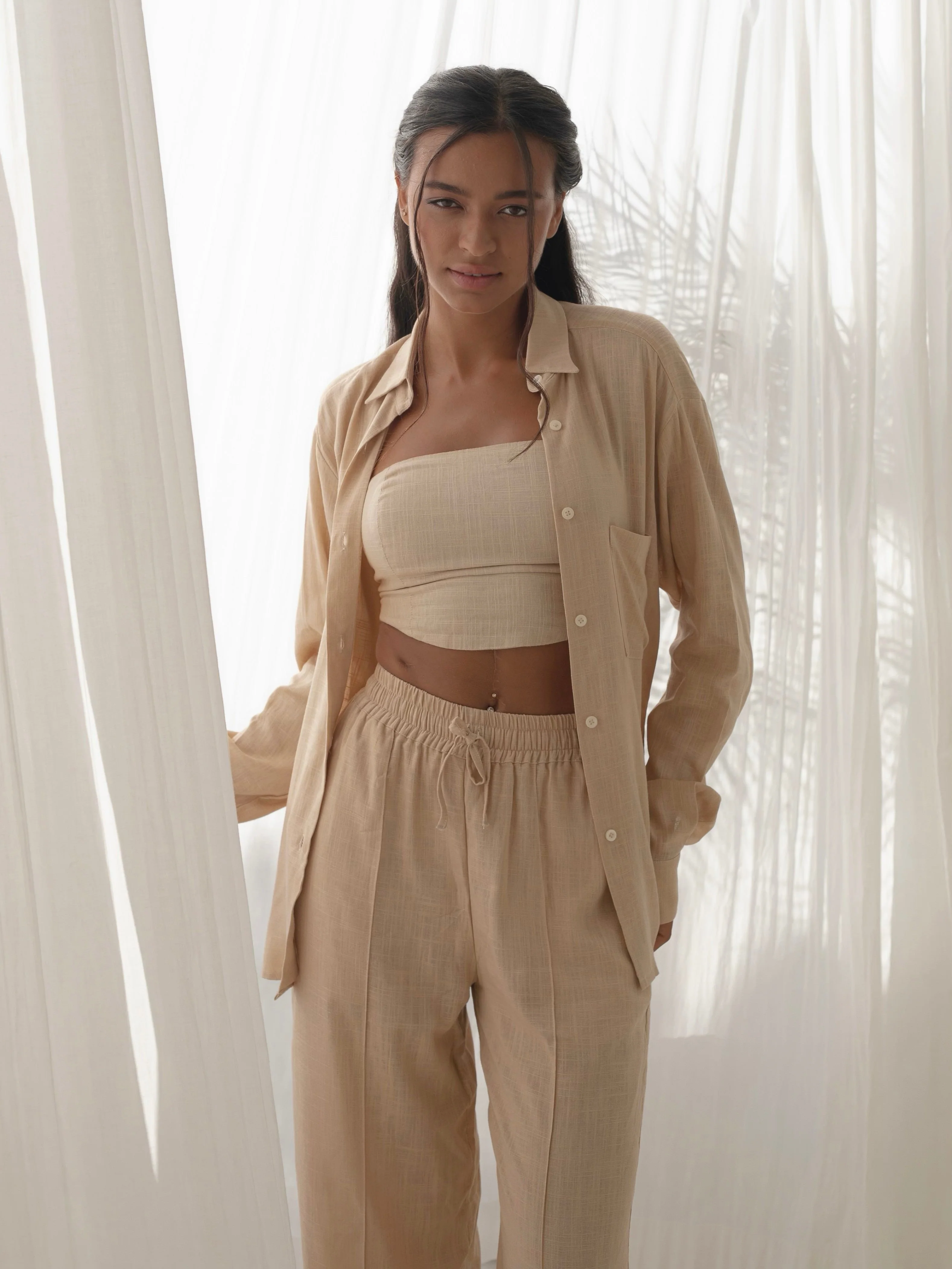 Master the minimal wardrobe. This shirt set is easy, light and comfy to wear every day, every season at home or outside.